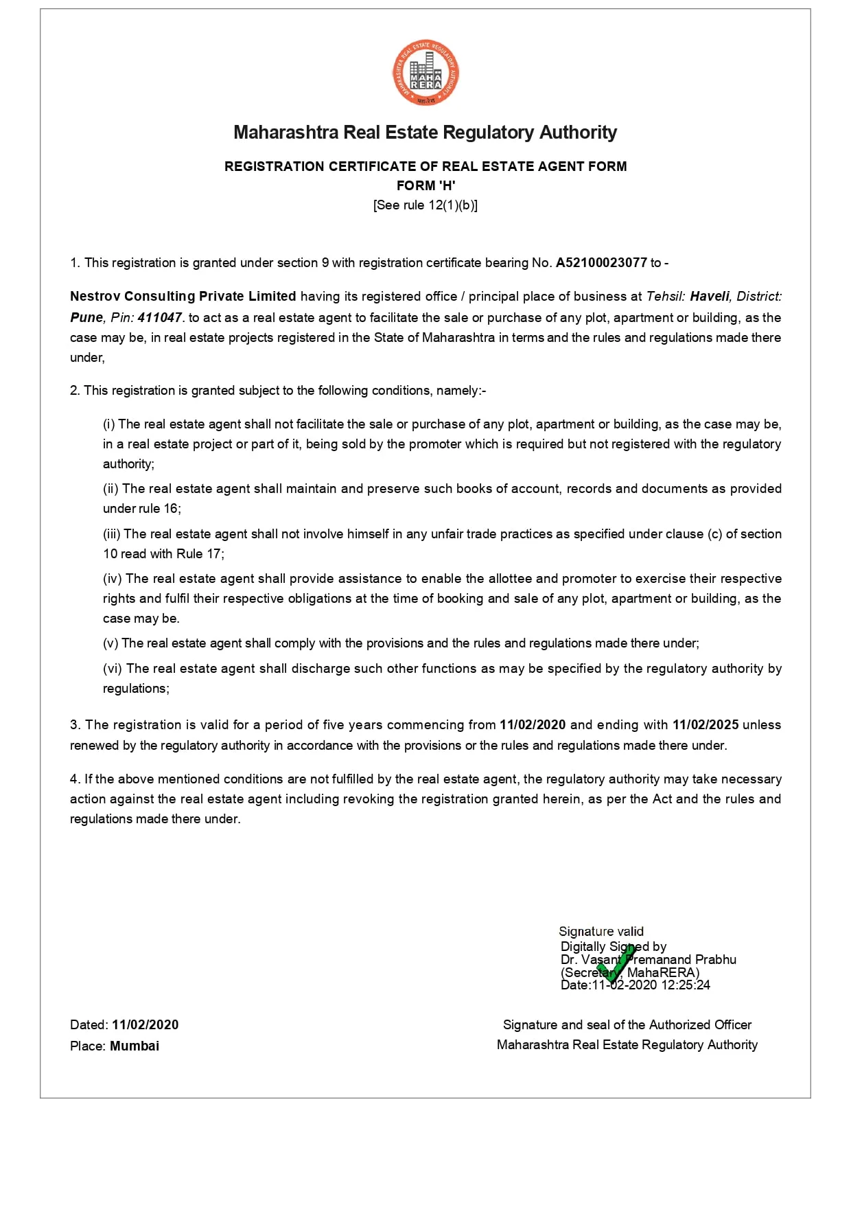 Real Estate Agent Name and Rera : Nestrov Consulting Private Limited, A52100023077